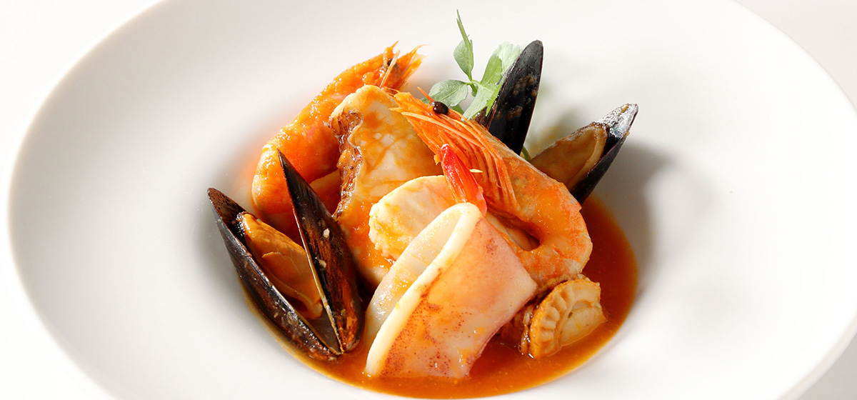 ホタテ、海老、イカ、白身魚、そしてムール貝。魚介の旨みが詰まったトスカーナの港町の伝統料理です。