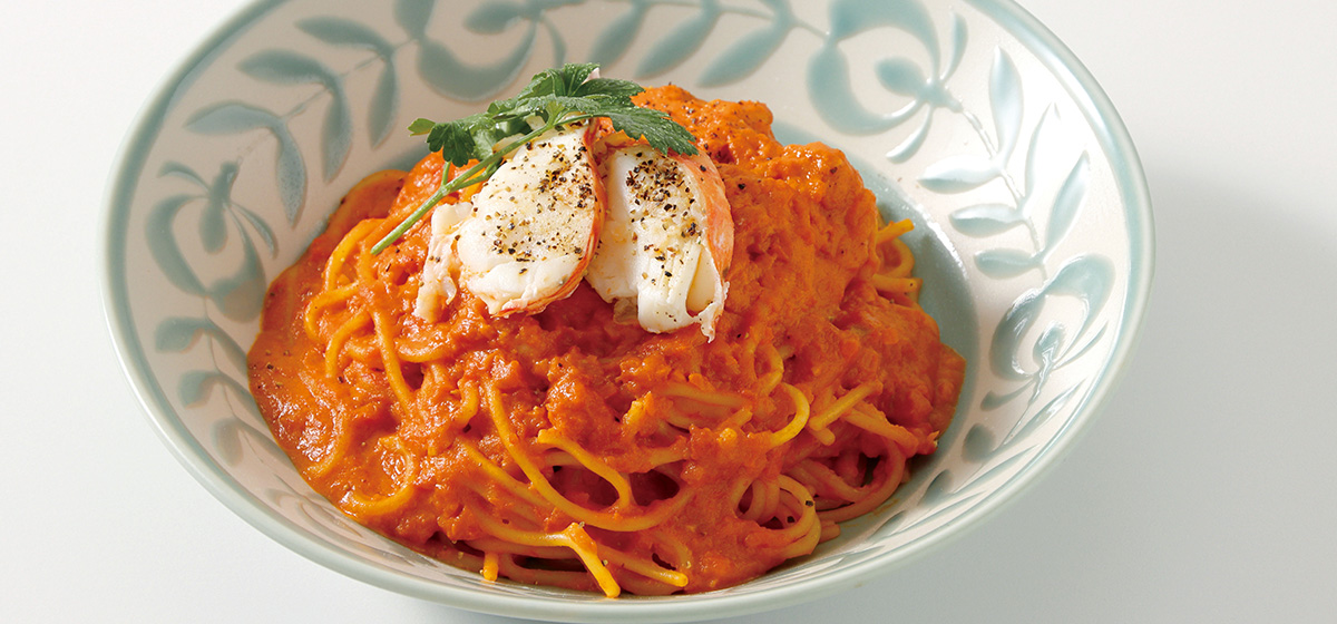 濃厚トマトソースにぷりぷりの伊勢海老を添えて。華やかさと深い味わいが調和する贅沢な一皿。
